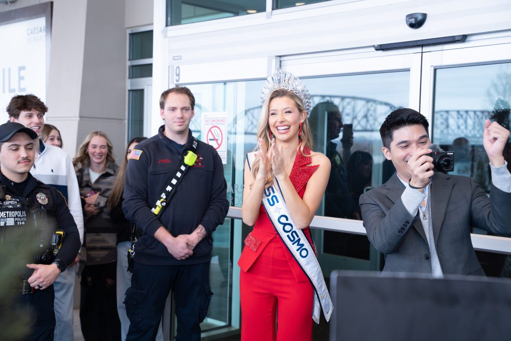The journey continued in Metropolis, Illinois, where Lindquist reunited with family and participated in official welcome events hosted by the local community. She also took part in a special studio interview with WSIL-TV, broadcast across multiple time slots. In the interview, she reflected on her path to the crown, key milestones from the competition, and her vision for advancing community-driven initiatives during her tenure. Appearing in her sash and crown, Lindquist projected elegance and professionalism while expanding the international visibility of Miss Cosmo through meaningful media engagement.