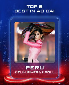 - Giới thiệu: Kelín Rivera Kroll, đến từ Arequipa, Peru, là doanh nhân, diễn giả, người mẫu và nhà sáng lập BELLKROLL Academy, nơi cô thúc đẩy lãnh đạo và phát triển cho phụ nữ. Tốt nghiệp Quản trị Kinh doanh, cô đã đạt được nhiều danh hiệu, bao gồm World Miss University 2016 và Miss Peru 2019, đồng thời lọt Top 10 Miss Universe 2019. Đam mê vẻ đẹp có ý nghĩa, Kelín dẫn dắt các chiến dịch như “BeKa – Art with Purpose” và “Roots that Shine”. Yêu thích thể thao và thiên nhiên, cô tìm thấy niềm vui trong việc đọc sách, chăm sóc động vật và trải nghiệm những khoảnh khắc trọn vẹn ý nghĩa.