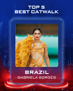 - Giới thiệu: Gabriela là một cô gái Brazil lớn lên trong một gia đình đông thành viên và tràn đầy yêu thương – nơi đã dạy cô những giá trị về sẻ chia, gắn kết và kiên cường. Sống giữa nhiều người thân, cô sớm học cách tìm tiếng nói riêng và xây dựng sức mạnh nội tại. Là một người yêu mèo, Gabriela nhìn thấy ở chúng hình ảnh của chính mình: độc lập, thanh lịch và âm thầm ấm áp. Đam mê thời trang từ nhỏ, Gabriela đã biến giấc mơ thành sự nghiệp. Cô tốt nghiệp ngành Thời trang, thành lập studio nhiếp ảnh của riêng mình và hiện đang chuẩn bị ra mắt thương hiệu thời trang mới. Với Gabriela, các cuộc thi sắc đẹp là hành trình trưởng thành và định hướng – nơi cái đẹp mở ra cơ hội, nhưng chính dấu ấn để lại mới tạo nên giá trị lâu dài. Ngoài ánh đèn sân khấu, Gabriela dành tâm huyết cho các hoạt động xã hội và môi trường. Thông qua A Parceira, cô hỗ trợ các dự án tái trồng rừng đồng thời trao cơ hội để những người dễ bị tổn thương có thể xây dựng lại cuộc sống. Trong vai trò đại sứ của Smile Train, cô góp phần mang lại nụ cười và sự tự tin cho trẻ em trên khắp thế giới.