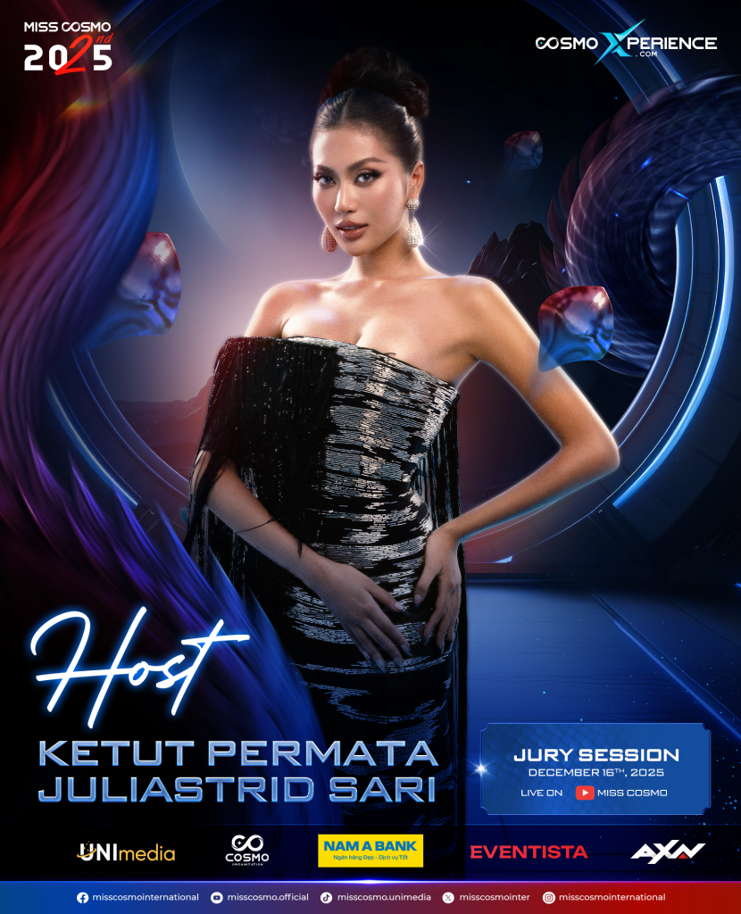 Tiếp nối hành trình truyền cảm hứng sau một năm đăng quang, Đương kim Miss Cosmo Ketut Permata Juliastrid chính thức đảm nhận vai trò mới trên sân khấu Miss Cosmo 2025, trở thành MC của đêm Jury Session với các nội dung: Đồng diễn, Tự giới thiệu, Trình diễn Bikini, Trình diễn Dạ hội và trao các giải thưởng phụ.